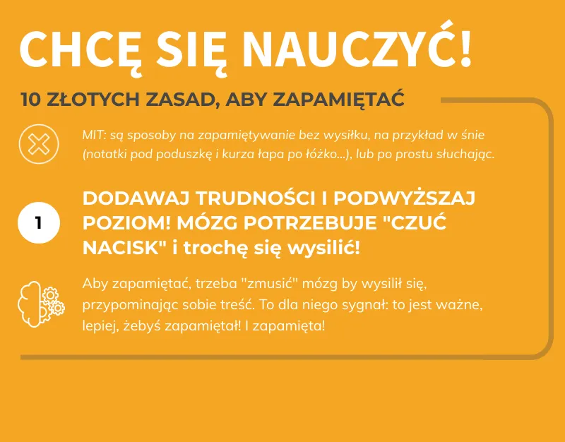 - Wykorzystanie technik mnemonicznych ułatwia zapamiętywanie trudnych informacji.